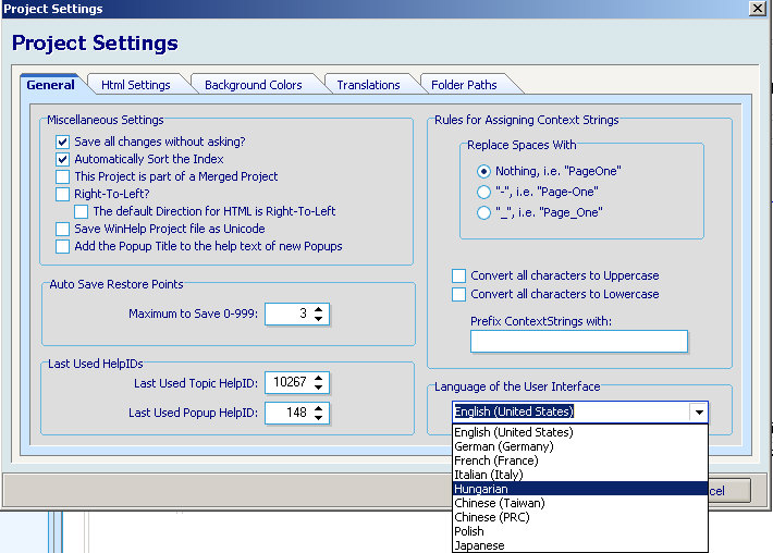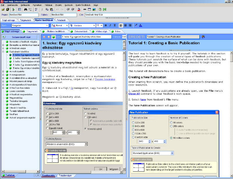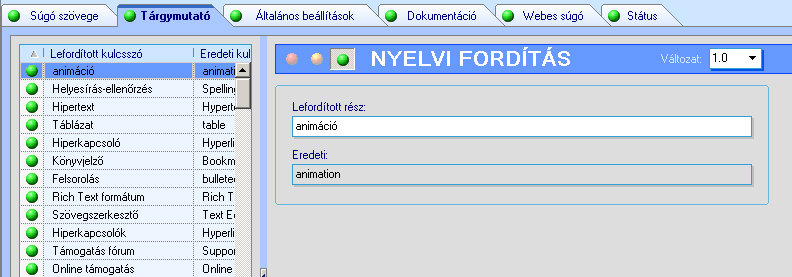 alkalmazásunk súgójának és dokumentációjának elkészítéséhez. Ezt bármilyen nyelven (magyar, angol, kínai, arab