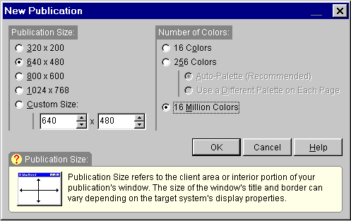 Egy új kiadvány elkezdésénél meg kell adnunk a méretét és a színfelbontását.