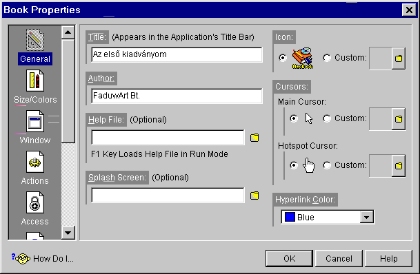 Itt adhatjuk meg a kiadványunk megjelenését szabályozó paramétereket.