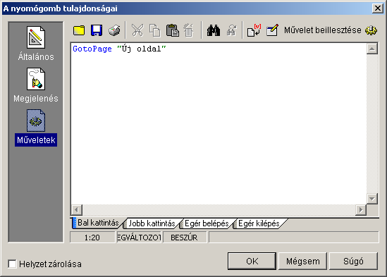 A nyomógomb lenyomásakor végrehajtandó parancsok. |