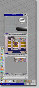A trueSpace5-ben lehetőség van a más 3D-s szerkesztőknél megszokott 4-nézetű elrendezésű ablak. Minden egyes ablak külön-külön méretezhető!