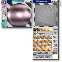 A trueSpace6-ban hozzárendelhetünk egy textúrát egy felületi fényforráshoz. Ugyanígy tehetünk az árnyékvisszaverődés bármely komponensével: egy bitmapet használhatunk egy egyszerű változó helyett.